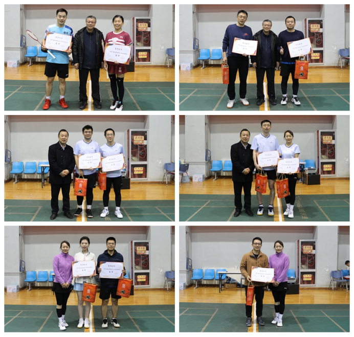 经全天鏖战,最终甲组8支队伍脱颖而出:苏玉波/闫宽摘得冠军,李璟睿/李东鹤获得亚军,王昱琛/高天畅获得季军,李晓玲/孙佳佳获得第四名,辛锋先/张飞鹏、王涛波/李洁茹、杨铁林/余小玲、补亚忠/李观营并列第五名。乙组刘学民/张涛获得冠军,梁莉/杨栋获得亚军,徐明龙/李泽清获得季军。郭烈锦、弋景峰、电信学部党委书记梁莉、体育中心副主任朱雪宇等老师分别为获奖队伍颁奖。