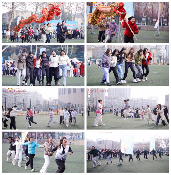 舞龙跑、跳大绳、贪吃蛇、六人七足四个项目轮番上阵,来自29个分会的34支队伍、超1200人次女教职工踊跃参与。场上欢声笑语不断,加油声此起彼伏,处处洋溢着节日的喜悦与团结的力量。