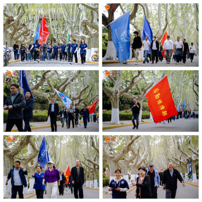 弋景峰、贾婧、董娜共同为健步走活动鸣枪发令。教职工精神抖擞、列队前行,沿指定路线开展短途健步走。大家步履铿锵、意气风发,在春日校园中舒展身心、交流互动,在并肩前行中凝聚奋进力量。