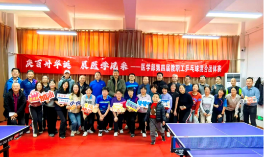 为庆祝西安交通大学建校130周年,积极响应“健康交大”建设号召,丰富医学部教职工体育文化生活,营造团结协作、积极向上的工作氛围,医学部工会于2026年1月10日在雁塔校区教职工之家成功举办“庆百卅华诞,展医学风采”——第四届教职工乒乓球混合团体赛。